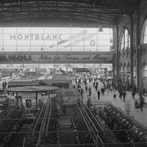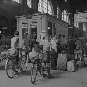 Abbildungen 3 und 4: Der Velobahnhof in der Haupthalle des Zürcher Hauptbahnhofs – ein gewohntes Bild in den 1940er-Jahren.