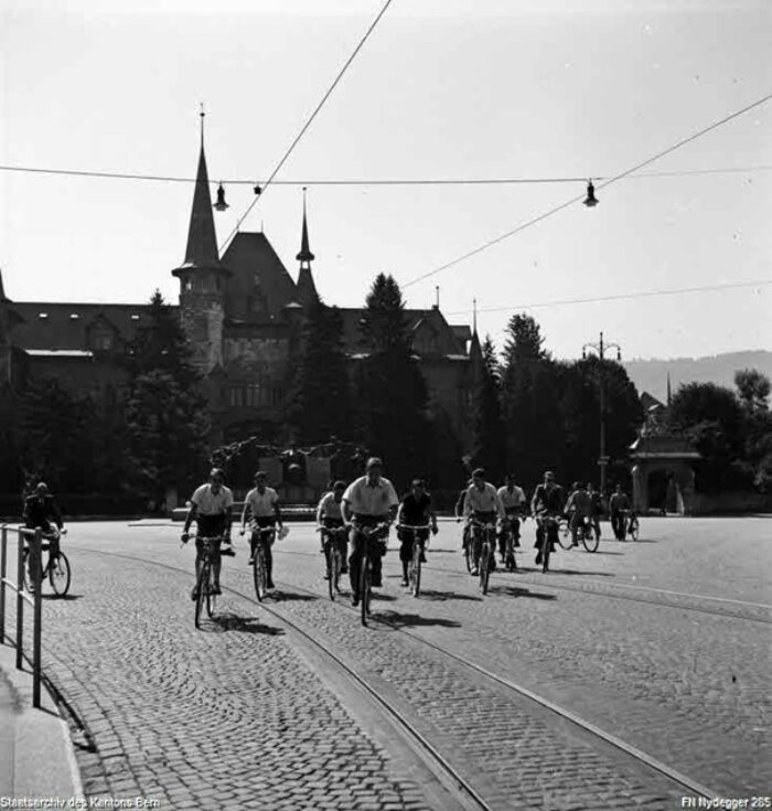 Titelbild: Nydegger, Walter: Radfahrer vor dem Historischen Museum, Bern 1945, Fotografie, 6 x 6 cm, Staatsarchiv des Kantons Bern, FN Nydegger 285, online: https://www.query.sta.be.ch/detail.aspx?ID=491993, Stand: 03.02.2025.